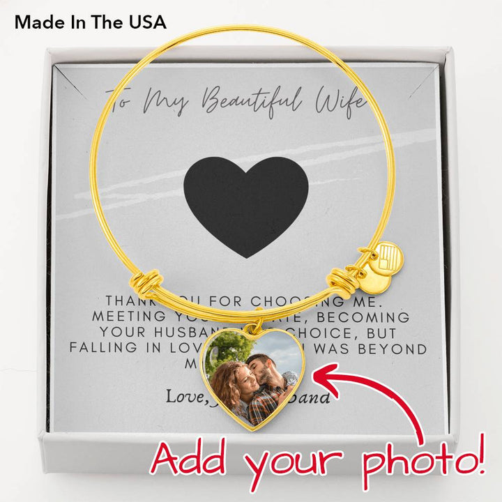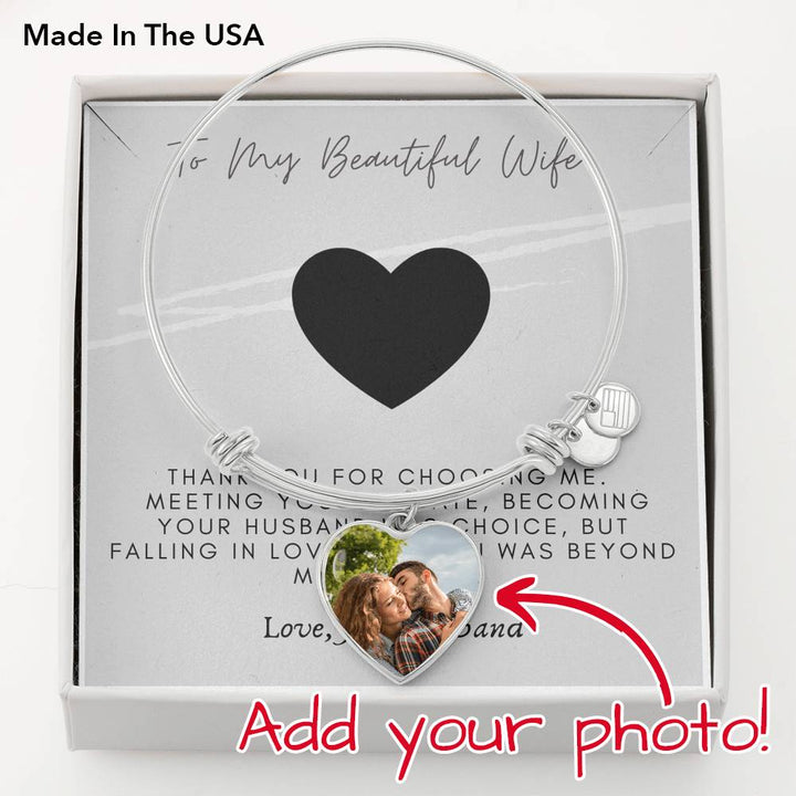 “To My Beautiful Wife. Thank you for choosing me. Meeting you was fate, becoming your husband was choice, but falling in love with you was beyond my control. Love, Your Husband.”
